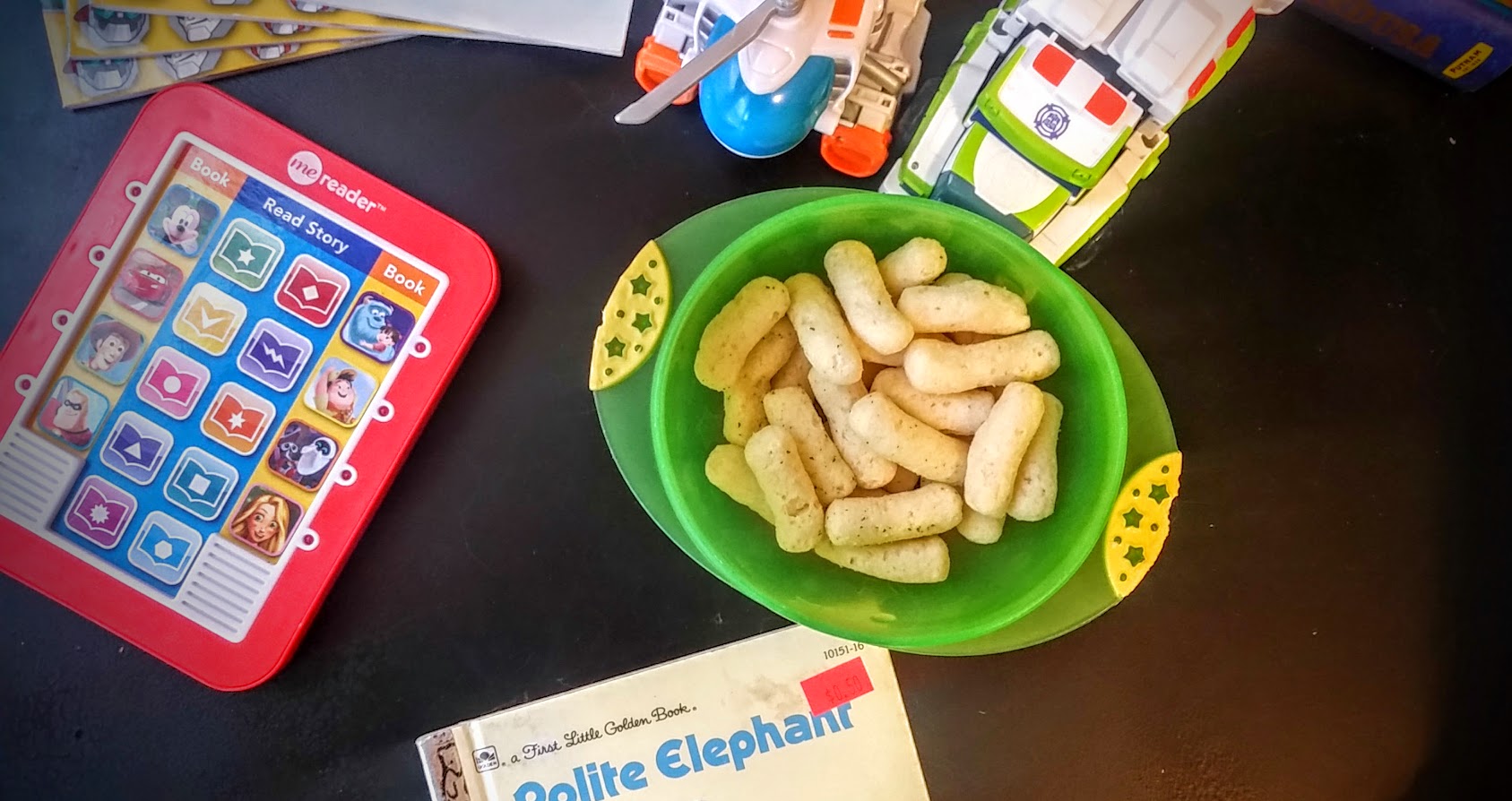 once i heard about lil' beanies by Gerber, I knew I had to give them a try. Benjamin exclaimed that they looked like chips, and started munching as soon as we could get them opened. they come in two delicious flavors, original & white cheddar & broccoli.